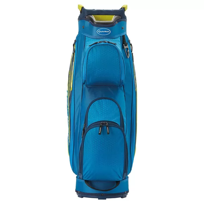 The TaylorMade Select Cart Bag features a 14-way top with a putter well to keep you clubs organized and protected. Seven pockets, including oversized front facing pockets and a velour lined valuables pocket, provide room for your on course storage needs.